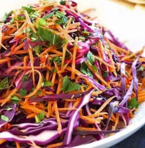 Fresh, homemade crunchy slaw – shredded green & red cabbage, with grated carrots, fresh parsley and celery with dressing or mayo/crème fraiche. We also offer Greek Salad, Potato Salad, Mexican Corn Salad and so on.
